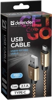 Kabel USB Defender AM-TYPE C 1m 2,1A złoty
