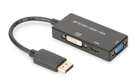 Kabel adapter DIGITUS 3w1 DisplayPort 4K 30Hz/1080p 60Hz DP / HDMI(UHD)+DVI-I+VGA (FHD) M/Ż 0,2m