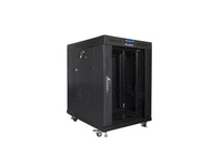 Szafa instalacyjna Rack stojąca 19" 15U 600x800 czarna drzwi szklane LCD Lanberg (flat pack)