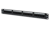 Patch panel 19" 24 porty, kat.5e, U/UTP, 1U, wspornik kablowy, czarny (kompletny)