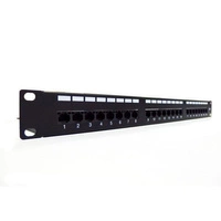 Patch panel 19" 24 porty, kat.6, U/UTP, 1U, wspornik kablowy, czarny (kompletny)