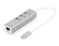 HUB/Koncentrator DIGITUS 3-portowy USB Typ C, USB A HighSpeed z Gigabit LAN aluminium