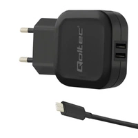 Ładowarka sieciowa Qoltec 17W 5V 3,4A 2xUSB + kabel USB type-C