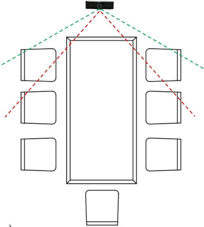 - Obiektyw bez zniekształceń z EPTZ, szerokie pole widzenia 120°, zoptymalizowane do potrzeb wideokonferencji.
