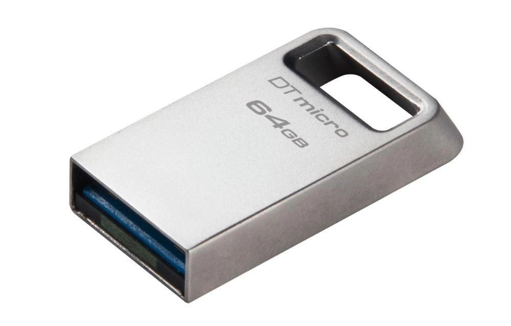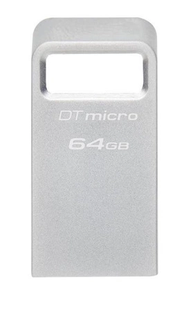 DataTraveler Micro to bardzo mały, lekki pendrive USB, typu "plug and stay" . Jest kompatybilny z komputerami, drukarkami, konsolami do gier i innymi urządzeniami. Pendrive jest wyposażony w płaską, wysokiej jakości metalową obudowę i wbudowaną pętlę na klucze, dzięki czemu porty USB pozostają wolne od zakłóceń. DT Micro oferuje USB 3. 2 Gen 1 z prędkością do 200 MB/s odczytu.