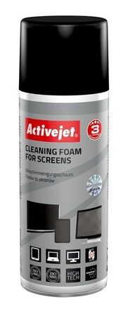 Activejet AOC-101 Antystatyczna Pianka do czyszczenia ekranów CRT 400ml Wysokiej jakości antystatyczna pianka do czyszczenia ekranów, monitorów, telewizorów, fotokopiarek, sprzętu optycznego, okien, luster, ceramiki. Usuwa silne zabrudzenia plamy