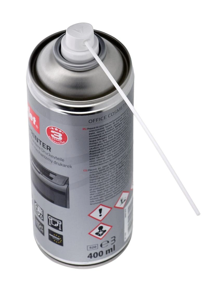 Activejet AOC-401 Preparat do czyszczenia drukarek, urządzeń (400 ml) Niezbędny w każdym biurze i każdym domu wyposażonym w drukarkę. Specjalny środek czyszczący w spray'u przeznaczony jest do delikatnego i skutecznego czyszczenia drukarek, kopiarek