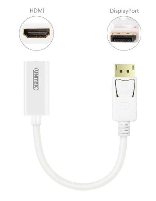 Unitek Y-6332 to konwerter który przekształca sygnał z DisplayPort na HDMI i tym samym pozwala podłączyć źródła sygnału np. komputer lub notebook z portem DisplayPort do odbiornika np. monitora lub projektora z wejściem HDMI.