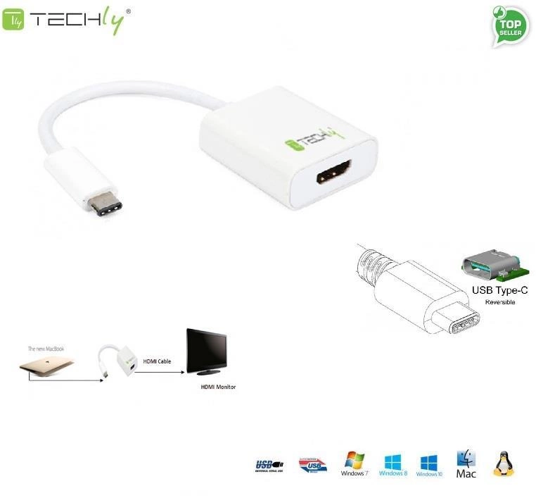 Adapter Techly USB31-HDMI USB-C 3.1 na HDMI M/Ż, biały 0,15m IADAP