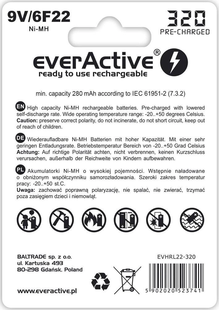 Akumulatorek everActive 6F22/9V Ni-MH 320 mAh ready to use
