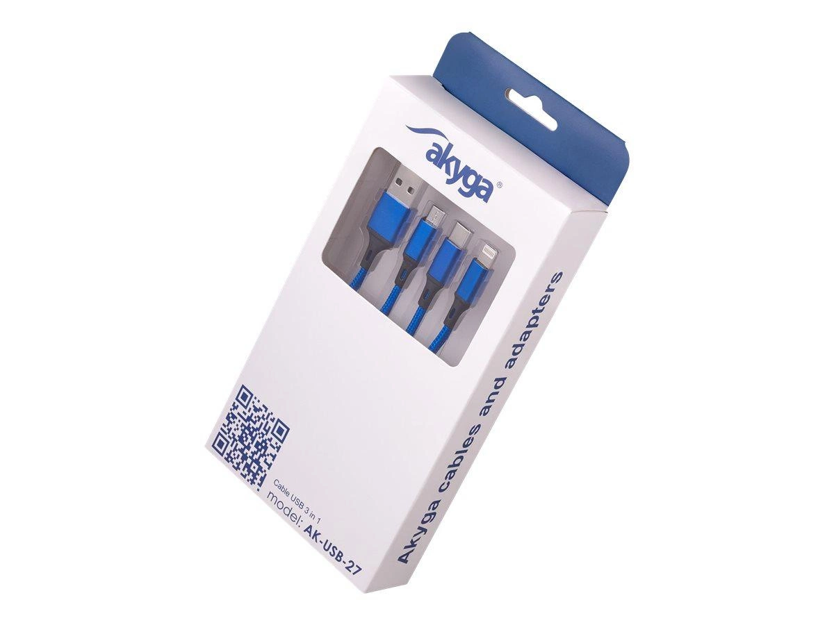 AKYGA Kabel USB AK-USB-27 USB A m / micro USB B m / USB type C m / Lightning m 1.2m