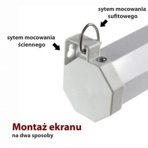 - Ekran elektryczny, sterowany pilotem umożliwia zatrzymanie go na dowolnej wysokości