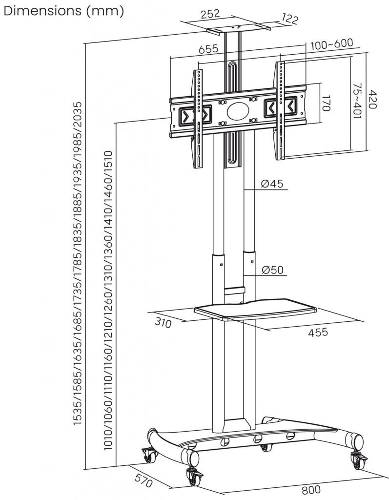 ART MOBILE STAND + MOUNT FOR TV 32-70inch 45KG S-12 Vesa 600x400