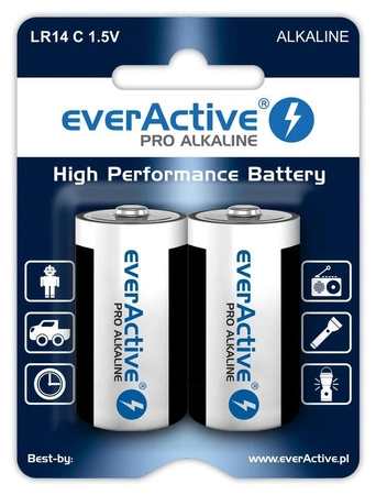 Niezawodne baterie alkaliczne od everActive. PRO ALKALINE to najwyższa linia baterii alkalicznych do profesjonalnych zastosowań. Pojemność ok. 8000 mAh. Min. termin ważności 2029.