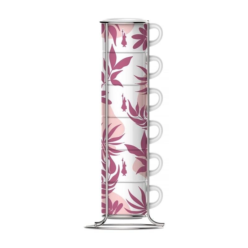 Bialetti Primavera Zestaw 6 filiżanek do espresso na stojaku - Różowy