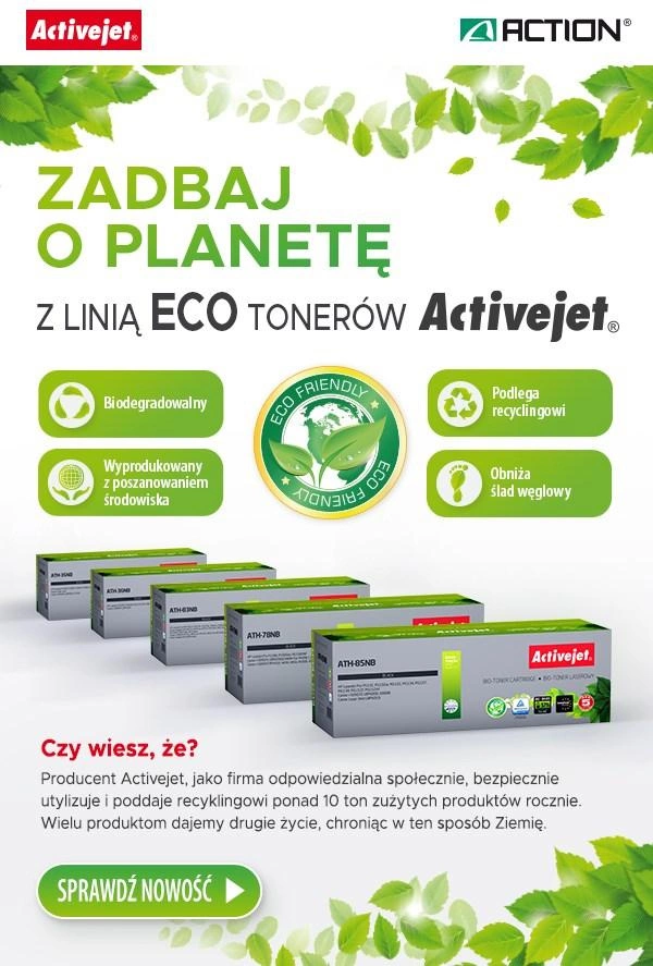 BIO Activejet ATH-35NB Toner (zamiennik HP 35A CB435A, Canon CRG-712; Supreme; 1800 stron; czarny). ECO Toner. Proszek w tonerze jest biodegradowalny. 57% Tonera jest pochodzenia biologicznego.