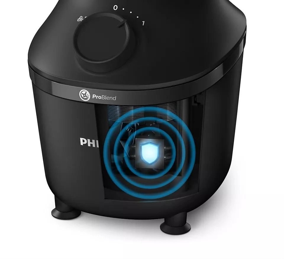 Wyjątkowy system ProBlend to doskonałe połączenie 3 technologii zaprojektowanych tak, aby zapewnić gładką konsystencję blendowanych produktów bez grudek w czasie zaledwie 45 sekund*. Silnik o mocy 600 W pozwala na równomierną cyrkulację wszystkich składników, innowacyjny kształt ostrza gwarantuje maksymalną powierzchnię cięcia, a wyjątkowy dzbanek z żebrowaniem nieustannie kieruje składniki na tor blendowania.