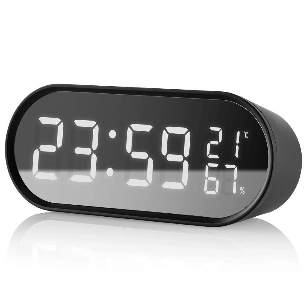 Wyświetlacz LED (36 mm),Zegar, budzik,Funkcja SNOOZE,Wyjście USB 5V/1A do ładowania urządzeń zewnętrznych,Mierzalny zakres temperatur od -0°C do +50°C,Zakres mierzalnej wilgotności od 20% do 95%,Zasilanie: baterie 3 x 1,5V/AAA lub adapter 5V (nie dołączon