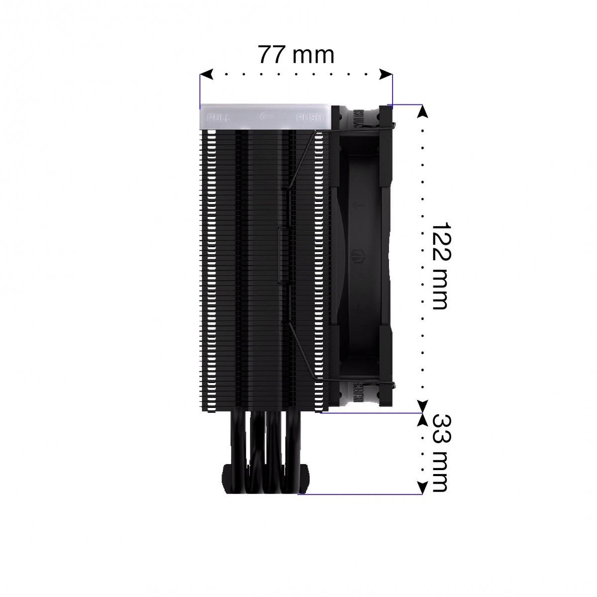 - Wymiary radiatora: 155 × 127 × 77 mm
