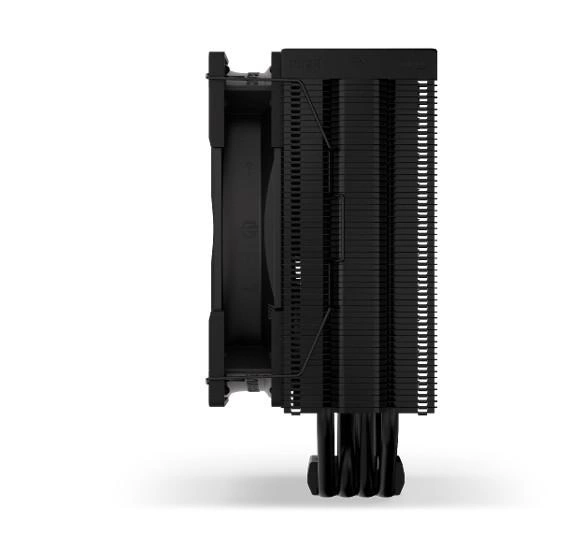 Fera 5 Black to najlepsza w swojej klasie wydajność chłodzenia i przyjemnie cicha praca nawet wtedy, kiedy komputer pracuje na najwyższych obrotach. Każdy jej element - od wentylatora Fluctus 120 PWM z opcjonalnym trybem półpasywnym i profilowanymi łopatkami z falistą krawędzią po gęsto użebrowany radiator na podstawie z czterema ciepłowodami - utrzymaliśmy w głębokiej, czarnej kolorystyce. Dzięki temu Fera 5 Black wygląda dobrze w każdym komputerze.