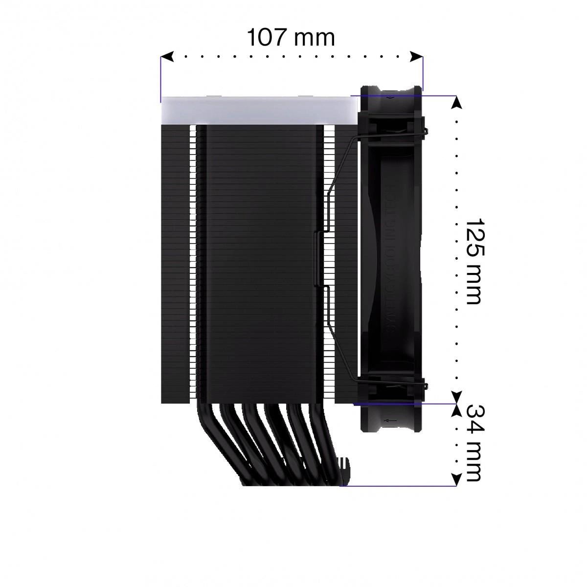 Gęsto użebrowany radiator osadzony na podstawie z sześcioma ciepłowodami świetnie odbiera energię cieplną z procesora. Dzięki optymalizacji do jednokierunkowego przepływu powietrza Fortis 5 Black ARGB zapewnia najlepszą w swojej klasie wydajność chłodzenia.