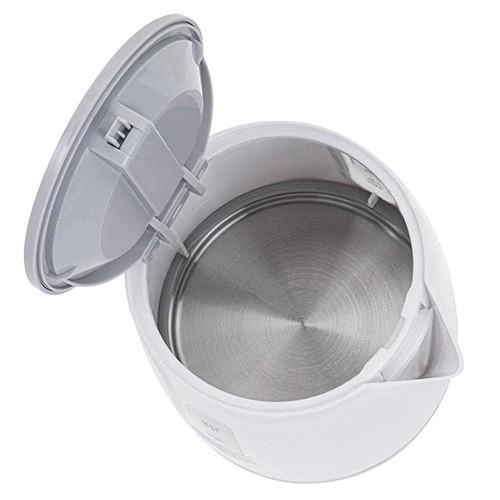 Klasyczny, 0,8 litrowy czajnik elektryczny, przydatny w każdej kuchni, biurze i akademiku. Jego bezpieczeństwo zapewnia blokada uniemożliwiająca włączenie pustego czajnika, oraz automatyczne wyłączenie po zagotowaniu wody. Czajnik wyposażony jest w filtr zatrzymujący osady, który poprawia smak i jakość wody. Funkcjonalność zwiększają stabilna podstawa i czytelny wskaźnik poziomu wody. Bardzo wygodny dzięki zastosowaniu płaskiego dna i obrotowej podstawy. Czajnik może pochwalić się ekonomiczną mocą 850 W.