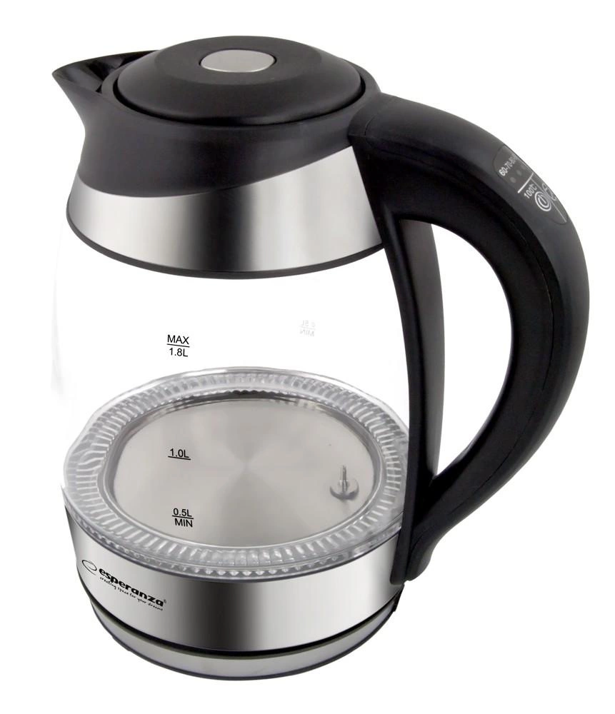 Szklany, bezprzewodowy czajnik elektryczny z regulacją temperatury Esperanza SEINE to nowość dla miłośników picia herbaty, ziół i innych naparów, które wymagają różnych temperatur parzenia. Czajnik podgrzeje wodę do 60°C, 70°C, 80°C oraz 90°C.