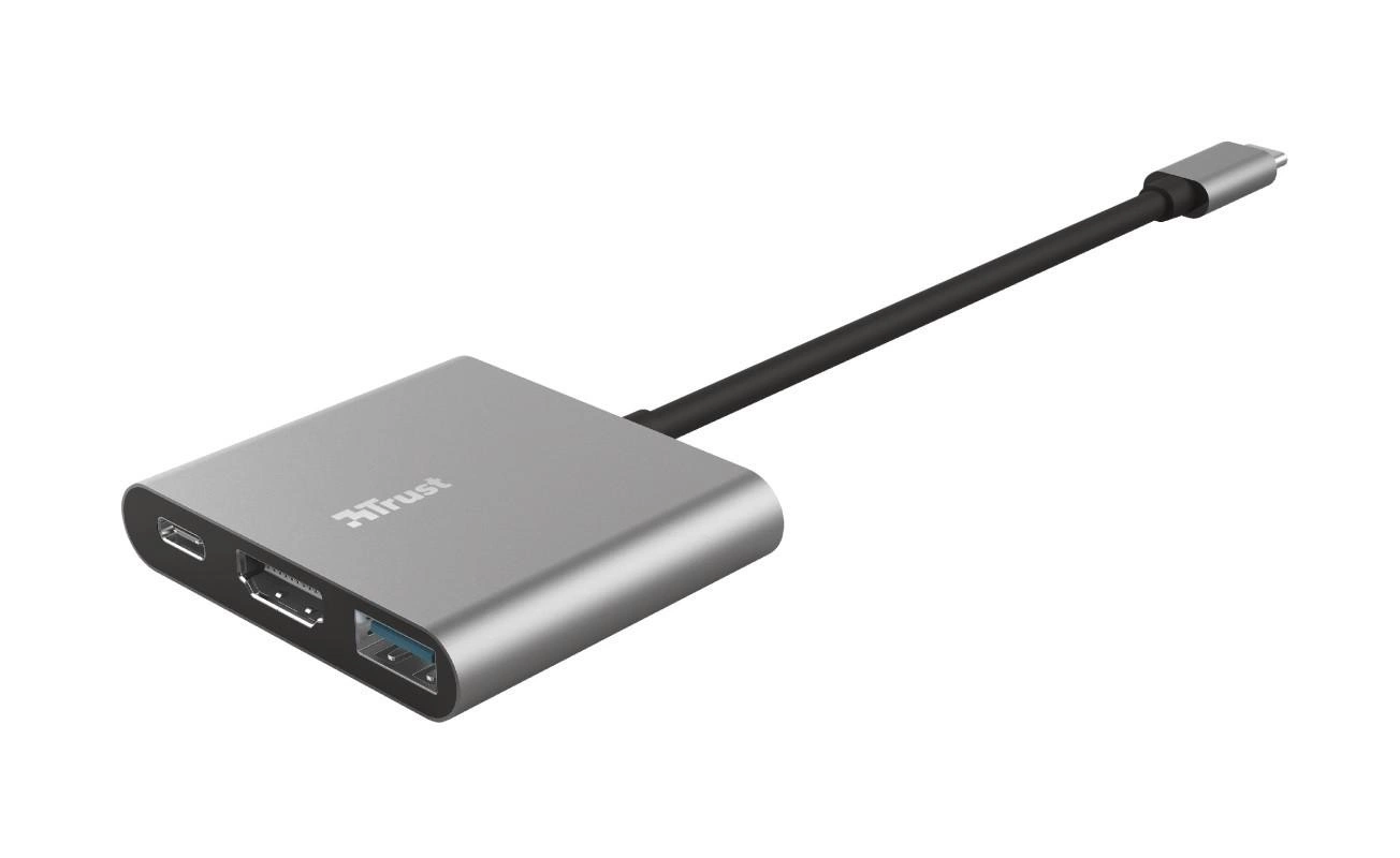 - Dzięki Trust Dalyx 3-w-1 Multiport Adapter USB-C możesz naprawdę wydobyć maksimum ze swojego laptopa. Zwiększ liczbę portów w swoim laptopie i połącz się z wieloma urządzeniami przez port HDMI, USB-A i USB-C do ładowania.
