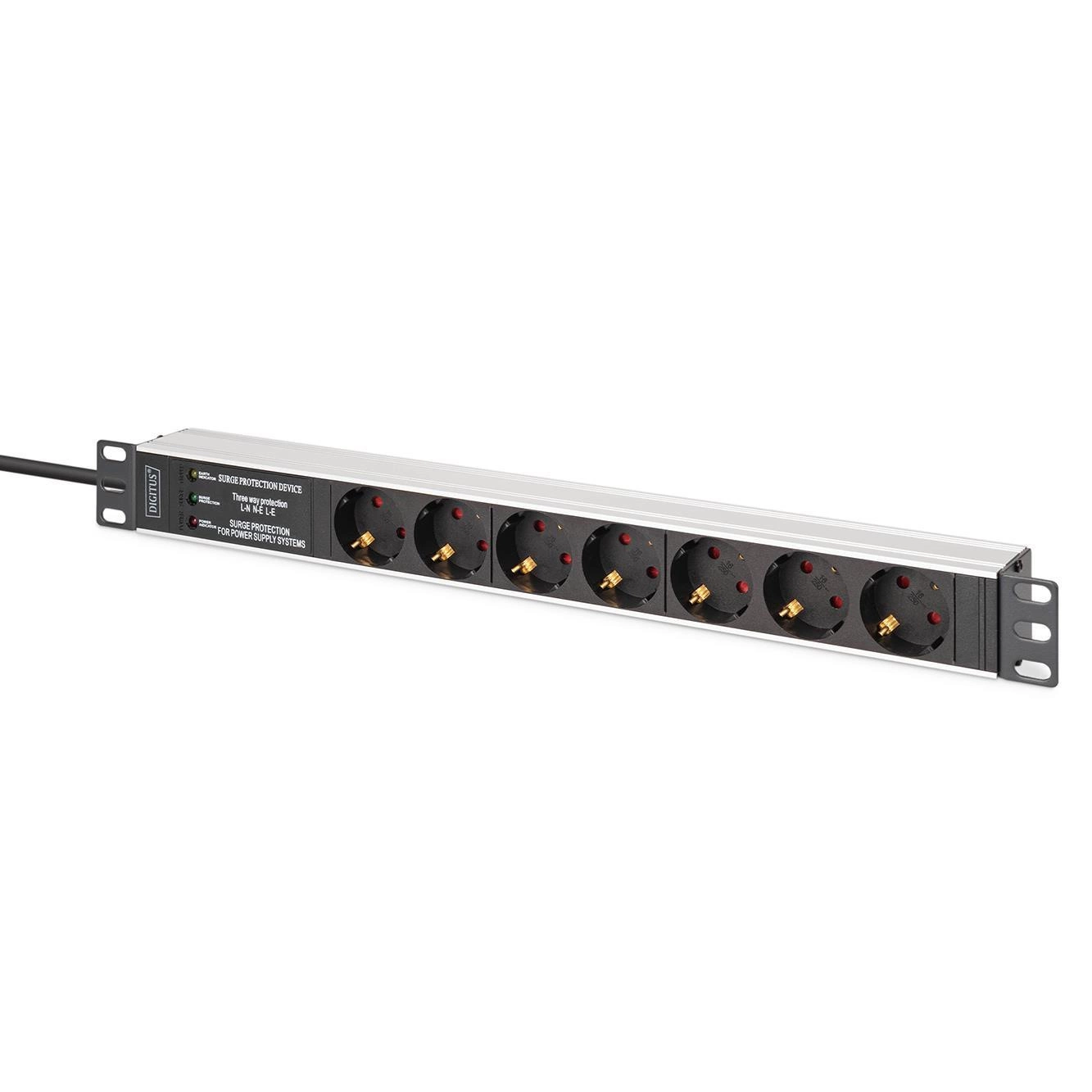 DIGITUS 1U Alu PDU Rackmount. 6x Safety outlet 1x outlet 16A 230VAC 50/60Hz Überspannungsschutz Netzfilter