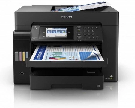 Drukuj, skanuj, kopiuj i wysyłaj faksy w formacie A3+ za pomocą tego szybkiego i funkcjonalnego urządzenia EcoTank. Zapewnia ono niski koszt wydruku strony i wyposażone jest w podajnik papieru na 550 arkuszy oraz automatyczny podajnik dokumentów na 50 arkuszy.