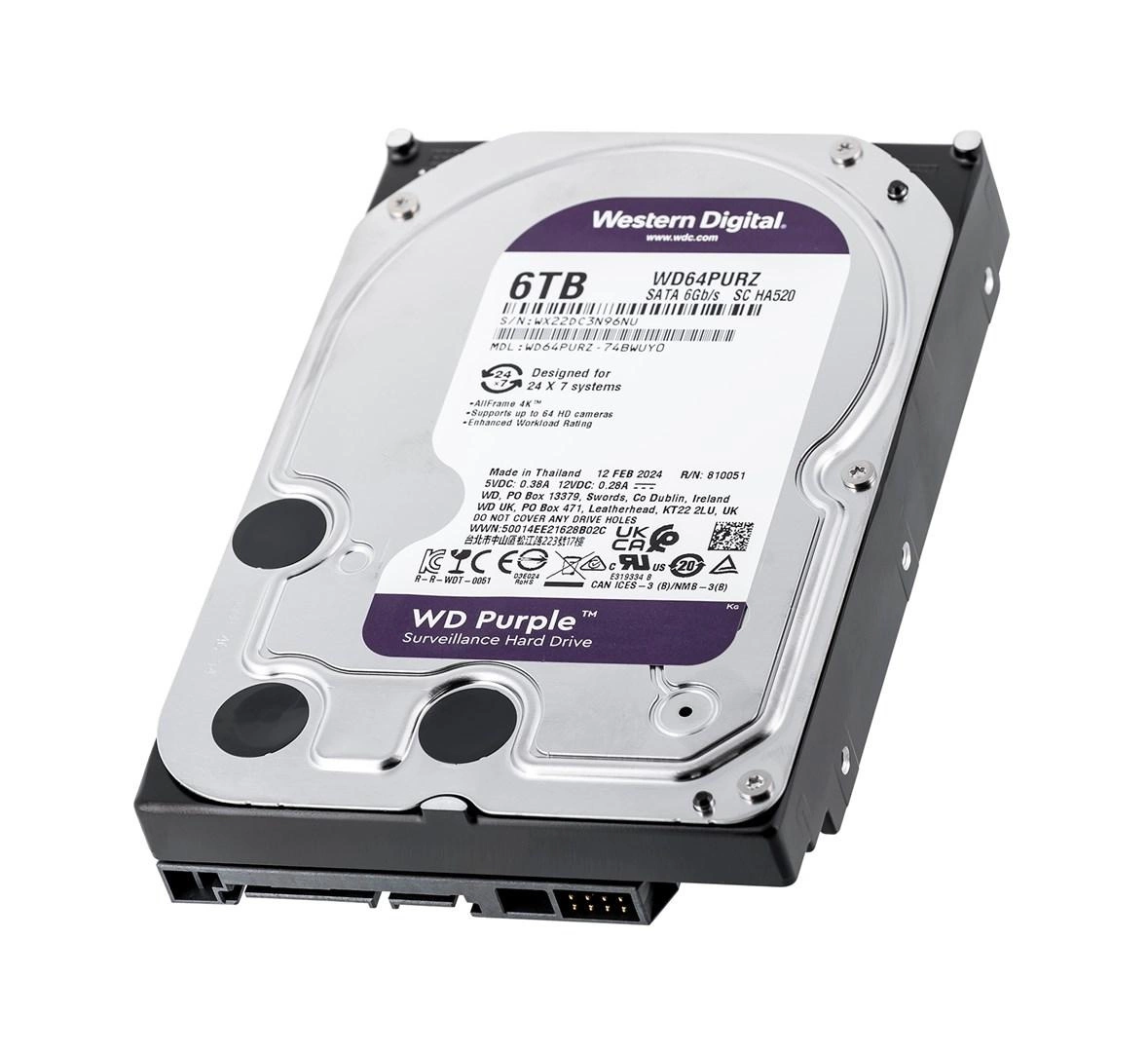 Dysk HDD WD Purple WD64PURZ (6 TB ; 3.5"; 256 MB; 5400 obr/min)