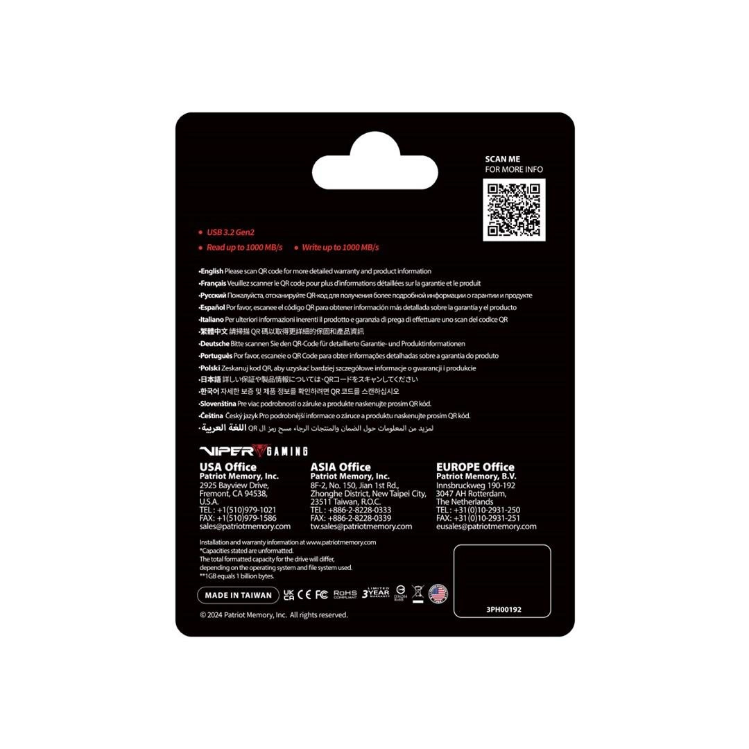 Dysk SSD Patriot PVP30 2TB 1000MB/s USB Duo A+C 3.2 Gen2 Alu