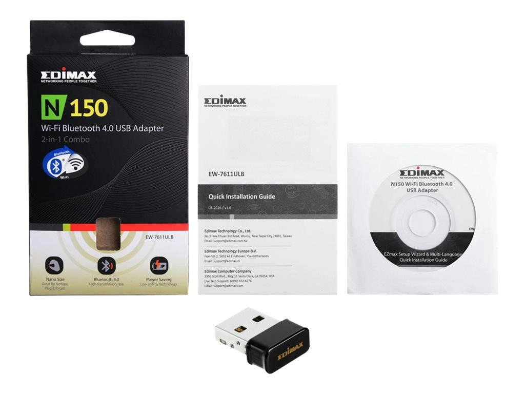 EDIMAX EW-7611ULB Edimax 2-in-1 N150 Wi-Fi & Bluetooth 4.0 Nano USB Adapter