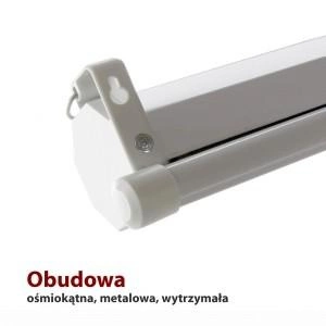 - Wytrzymała metalowa, ośmiokątna obudowa. Każdy ekran zapakowany w specjalne wzmocnione narożniki chroniące go w transporcie.