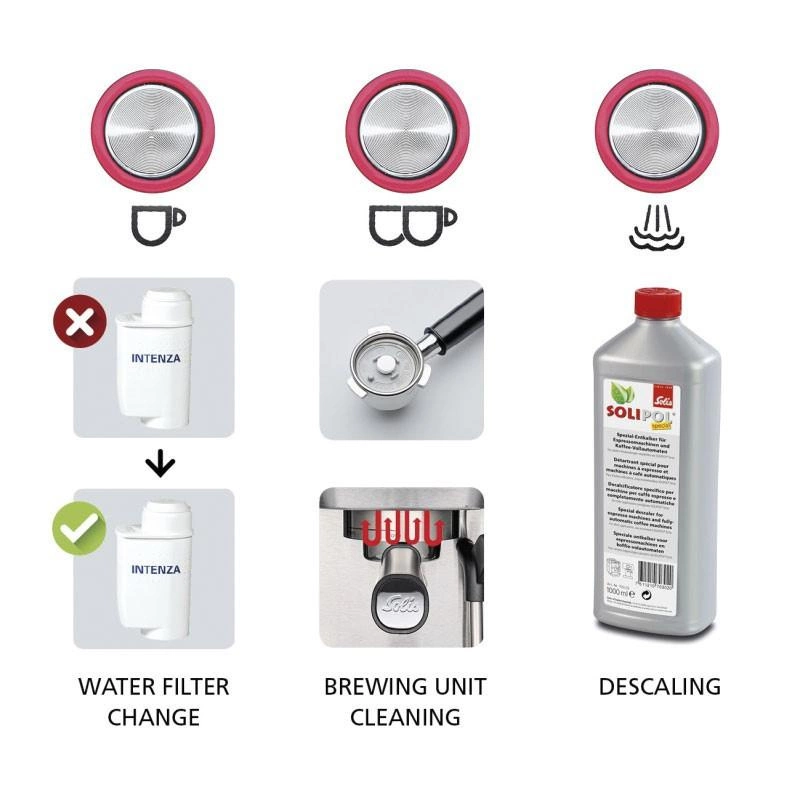 Pompa do espresso w stylu włoskim pracuje z ciśnieniem 15 barów, aby umożliwić idealną ekstrakcję. - Powiadomienie o konserwacji