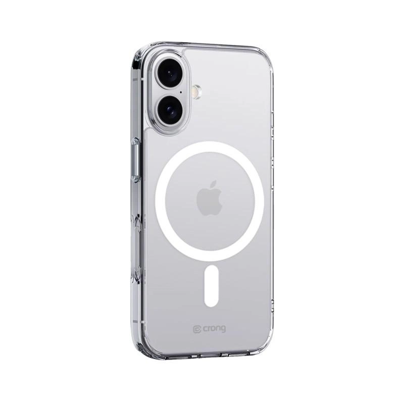 Przezroczyste etui ochronne do iPhonea 16 z wbudowanym magnesem do ładowarki i akcesoriów MagSafe. Ukryty w hybrydowej powłoce pierścień magnetyczny (składający się z 39 mniejszych magnesów) sprawia, że ładowarka oraz pozostałe akcesoria MagSafe dopasowują się do telefonu za każdym razem w idealny sposób.