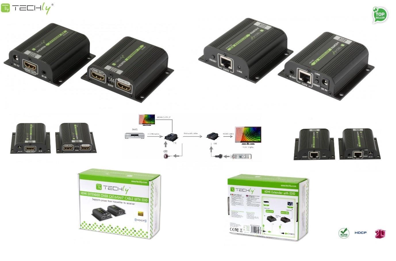 Extender HDMI Techly po skrętce Cat.6/6a/7, do 40m, EDID IR POE/POC