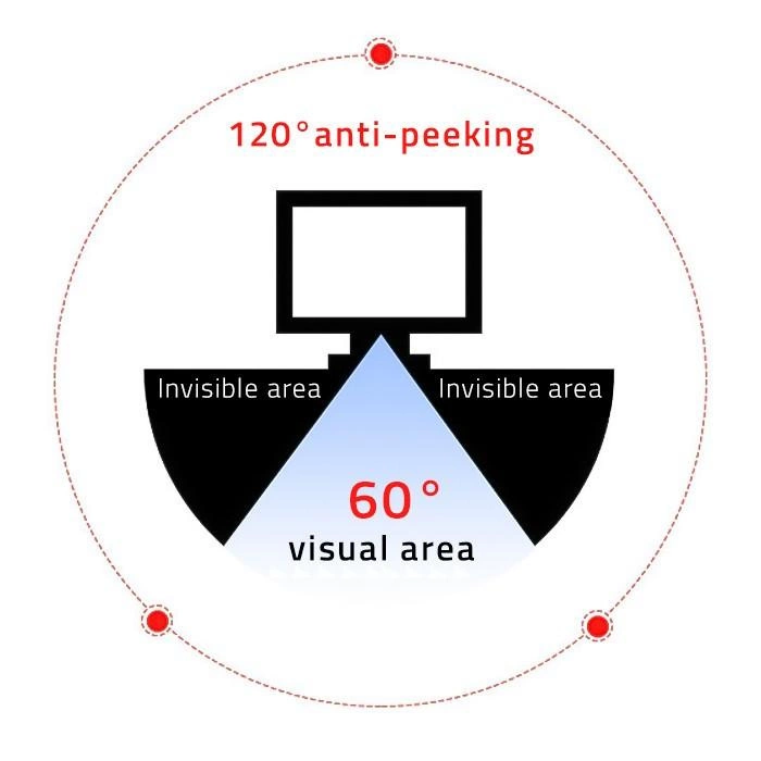 Filtr prywatyzujący marki Qoltec kryje w sobie tajemnicę nowoczesnej technologii, która zapewnia niezawodną ochronę. Wykorzystując zaawansowane mikrożaluzje, filtr ten zapewnia czytelność ekranu z przodu na szerokości 60 stopni, jednocześnie uniemożliwiając niepożądanym osobom widok z boku. Już przy lekkim kącie widzenia obraz staje się nieczytelny, a gdy kąt widzenia wynosi 30 stopni, ekran całkowicie przyciemnia się, gwarantując ochronę Twojej prywatności w każdej sytuacji.