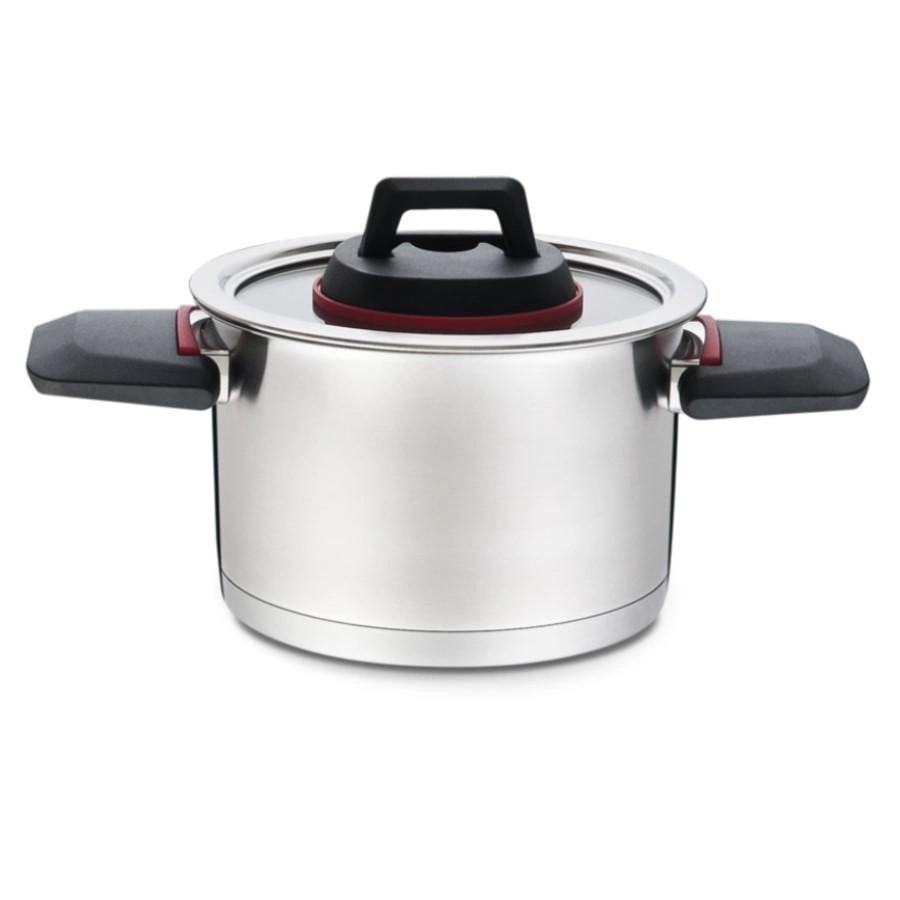 Jednym z kluczowych atutów tego garnka są składane uchwyty, które ułatwiają przechowywanie. Dzięki tej innowacyjnej funkcji, garnek zajmuje niewiele miejsca i można go bez trudu schować, wkładając jeden w drugi z innymi garnkami z serii MR-3530. Garnek wyposażony jest również w szklaną pokrywkę z otworem odprowadzającym parę, który umożliwia monitorowanie procesu gotowania bez konieczności podnoszenia pokrywy.