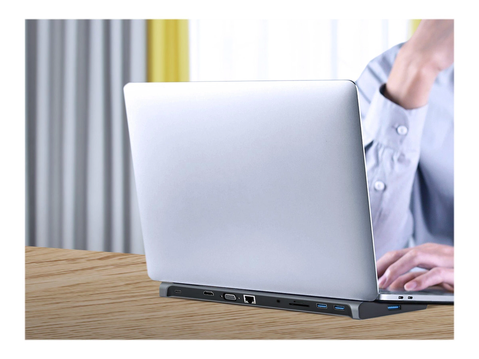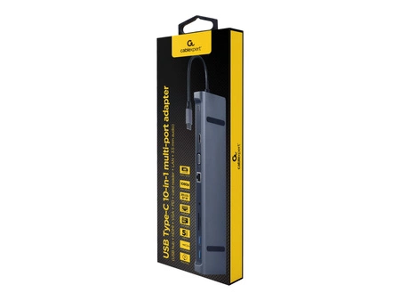 GEMBIRD A-CM-COMBO10-01 Adapter wieloportowy USB Type C 10w1 HUB USB + HDMI + VGA + PD + czytnik kart + LAN + audio 3.5 mm,szary