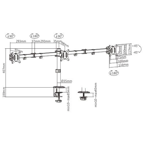 GEMBIRD BIURKOWE REGULOWANE RAMIĘ/UCHWYT NA 3 MONITORY 17-27, 100X100MM, DO 7KG