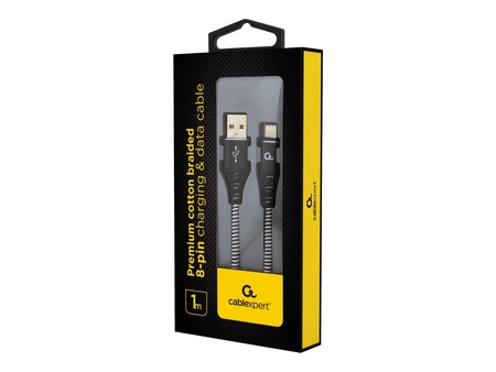 GEMBIRD CC-USB2B-AMLM-1M-BW Gembird Kabel Premium USB 2.0 do 8-pin (metalowe wtyki,oplot) 1m, czarny/biały