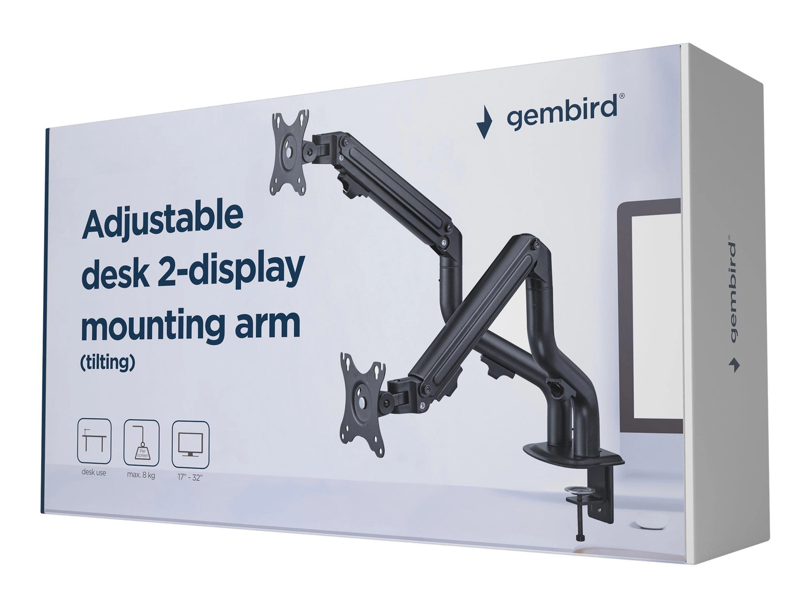 GEMBIRD MA-DA2-02 Biurkowe ramię na dwa monitory regulowane od 17 do 32inch obciążenie do 8kg