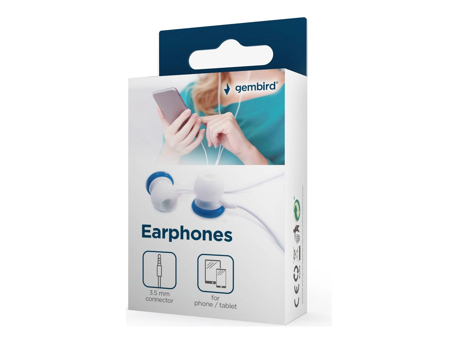 GEMBIRD MHP-EP-001-B Gembird słuchawki stereo douszne MP3, 3.5mm Jack, niebieskie (90 cm)