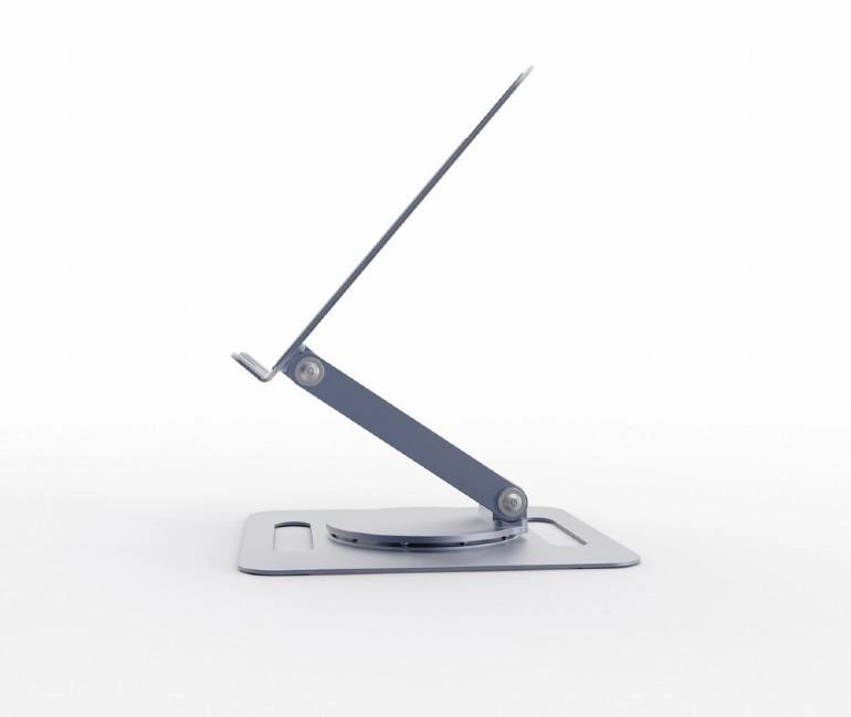 • Składana, obrotowa, metalowa podstawka pod notebooka z płynną regulacją wysokości.