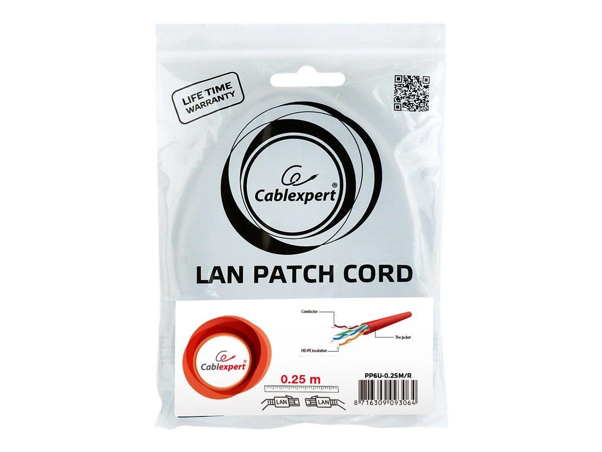 GEMBIRD patchcord kat 6 zalewane końcówki 0.25m czerwony
