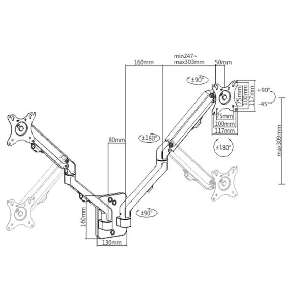 GEMBIRD REGULOWANE RAMIĘ NA 2 MONITORY DO MONTAŻU NA ŚCIANIE 17-27, 100X100MM, DO 7 KG
