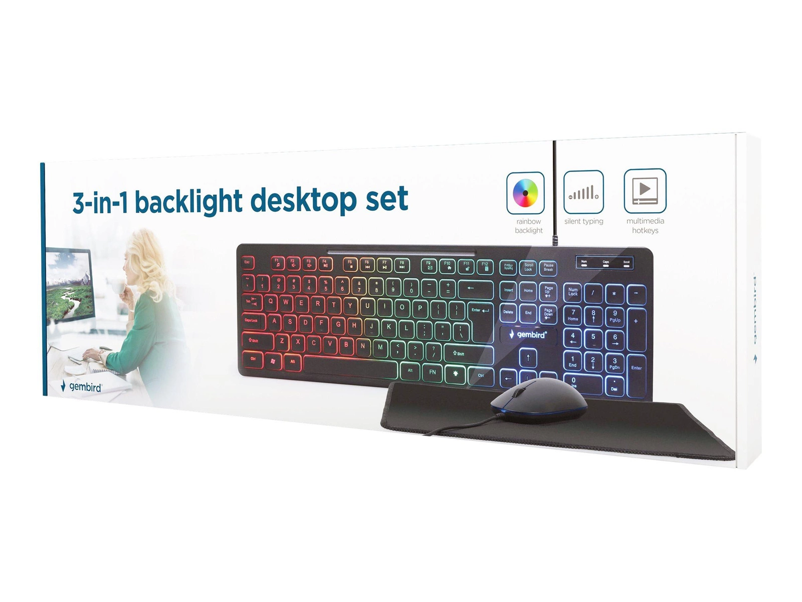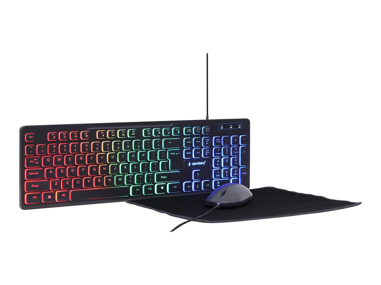 GEMBIRD Zestaw 3 w 1 Klawiatura multimedialna z podświetleniem RGB czarna mysz wraz z podkładką