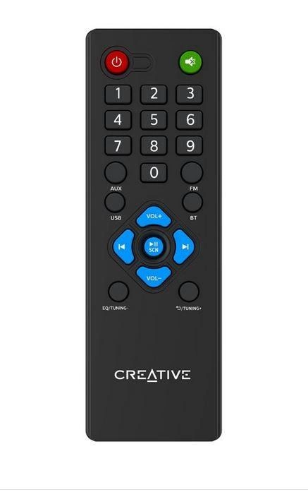 Aby ułatwić obsługę systemu głośników, dołączony został pilot zdalnego sterowania na podczerwień, który pozwala sterować ustawieniami dźwięku, głośnością i odtwarzaniem muzyki. Można też wybrać różne ustawienia wstępne korektora dźwięku za pomocą pilota zdalnego sterowania, aby dopasować dźwięk do gatunku słuchanej muzyki lub nastroju.