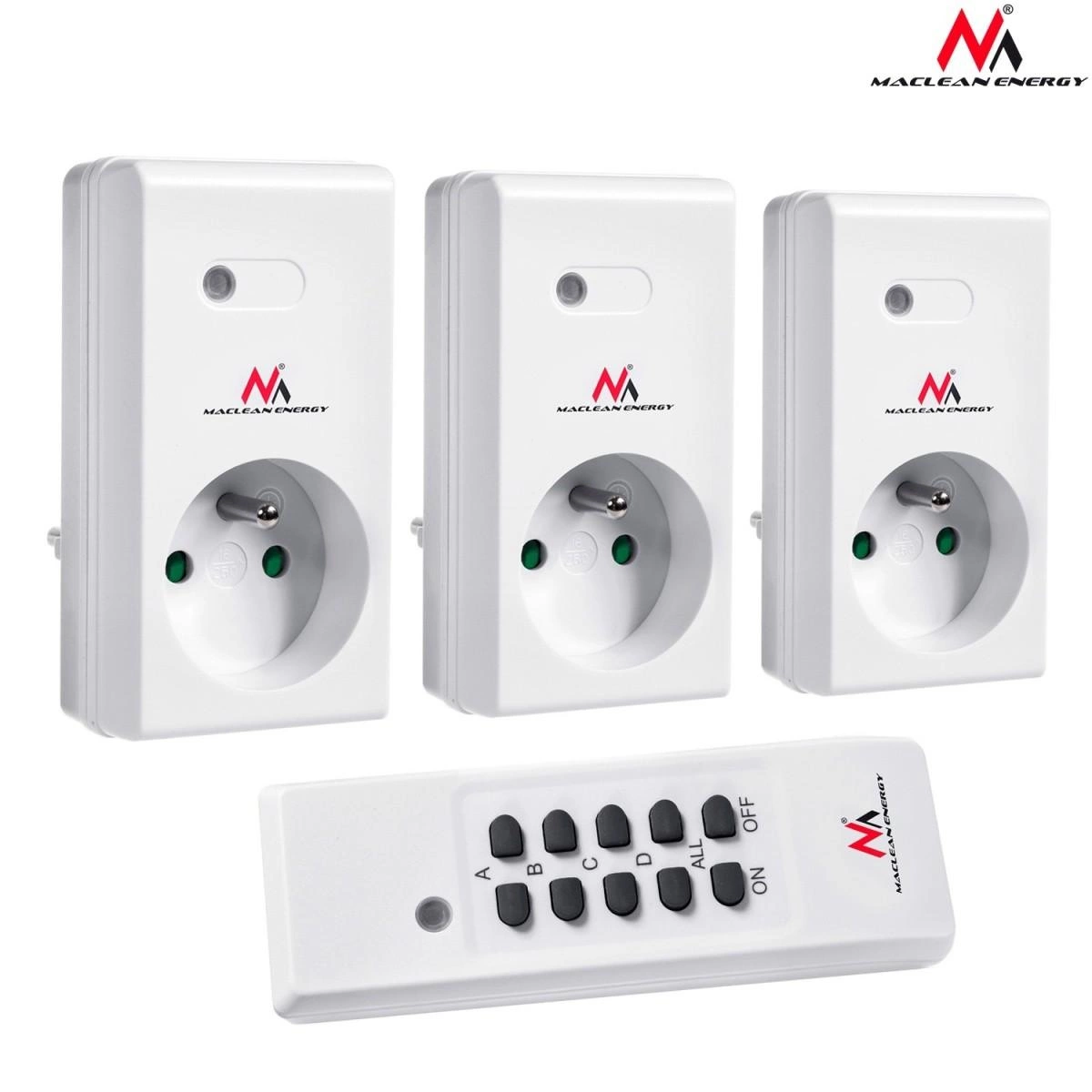 Gniazdka sieciowe wewnętrzne sterowane pilotem Maclean Energy MCE153 3szt. - programowalne + bateria do pilota